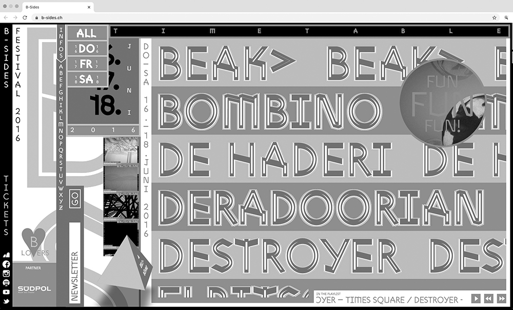 Michael KryenbühlWe are very grateful for the projects where we can really explore new techniques and working methods, such as for the B-Sides Festival website, for example. In that project, we knew beforehand that the available budget was low. However, all the people involved in the organization are equally paid and equally committed, so we chose not to count our hours. The budget often doesn’t necessarily relate to the amount of work you put in the project in the end, but is instead more of an investment in the exploration of new things and the ability to test them in their applied context. In this case, the payback didn’t translate into money, but rather visibility and the chance to learn new tools. You could say there was a monetary payback at a certain point, since we received a Swiss Design Award for that project. That was great, but it is, of course, an exception to the rule. However, from that moment on, in terms of commissions for projects for new clients, we began receiving the proper amount of money required for building a website. This then influenced the way in which we work: we didn’t see tools as an additional commodity for which we would charge a specific amount of money, but rather as an integral part of the design process. Conceptual sketching and coding goes hand in hand. A custom-coded website becomes a tool with which one can develop the concept and visual language of the identity, for instance; the entire creative process is intertwined.